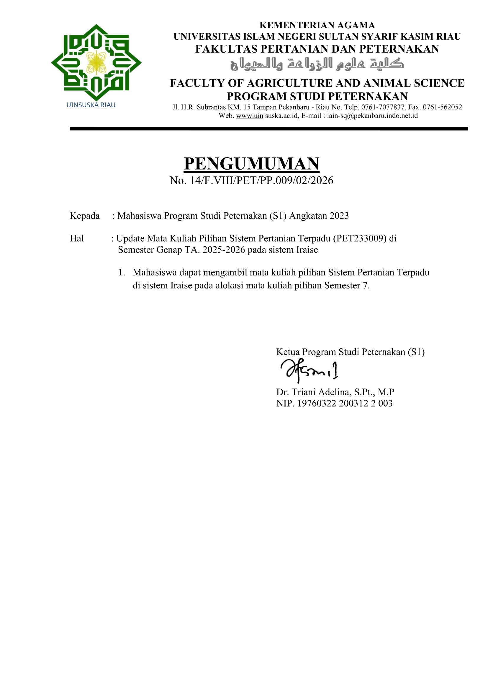 PENGUMUMAN BAGI MAHASISWA ANGKATAN 2023